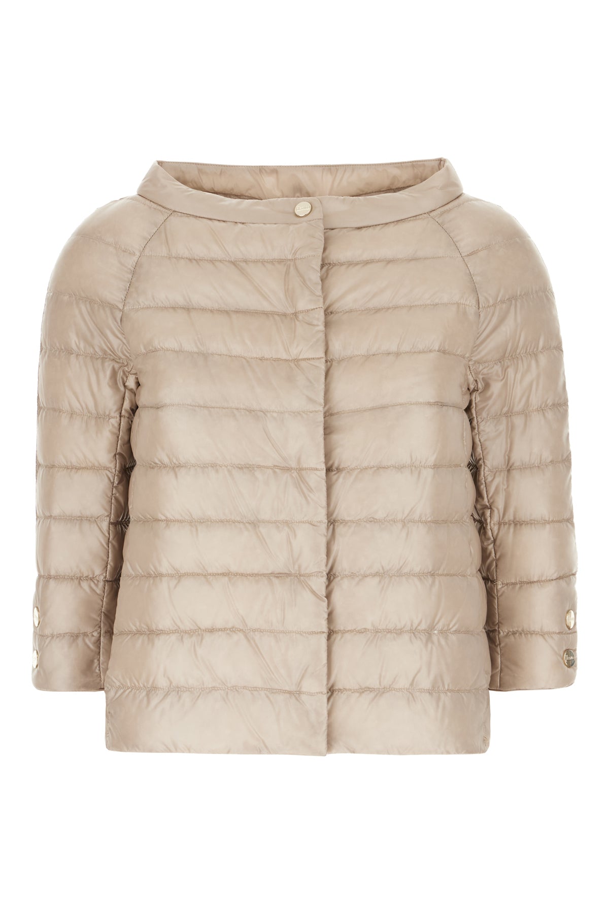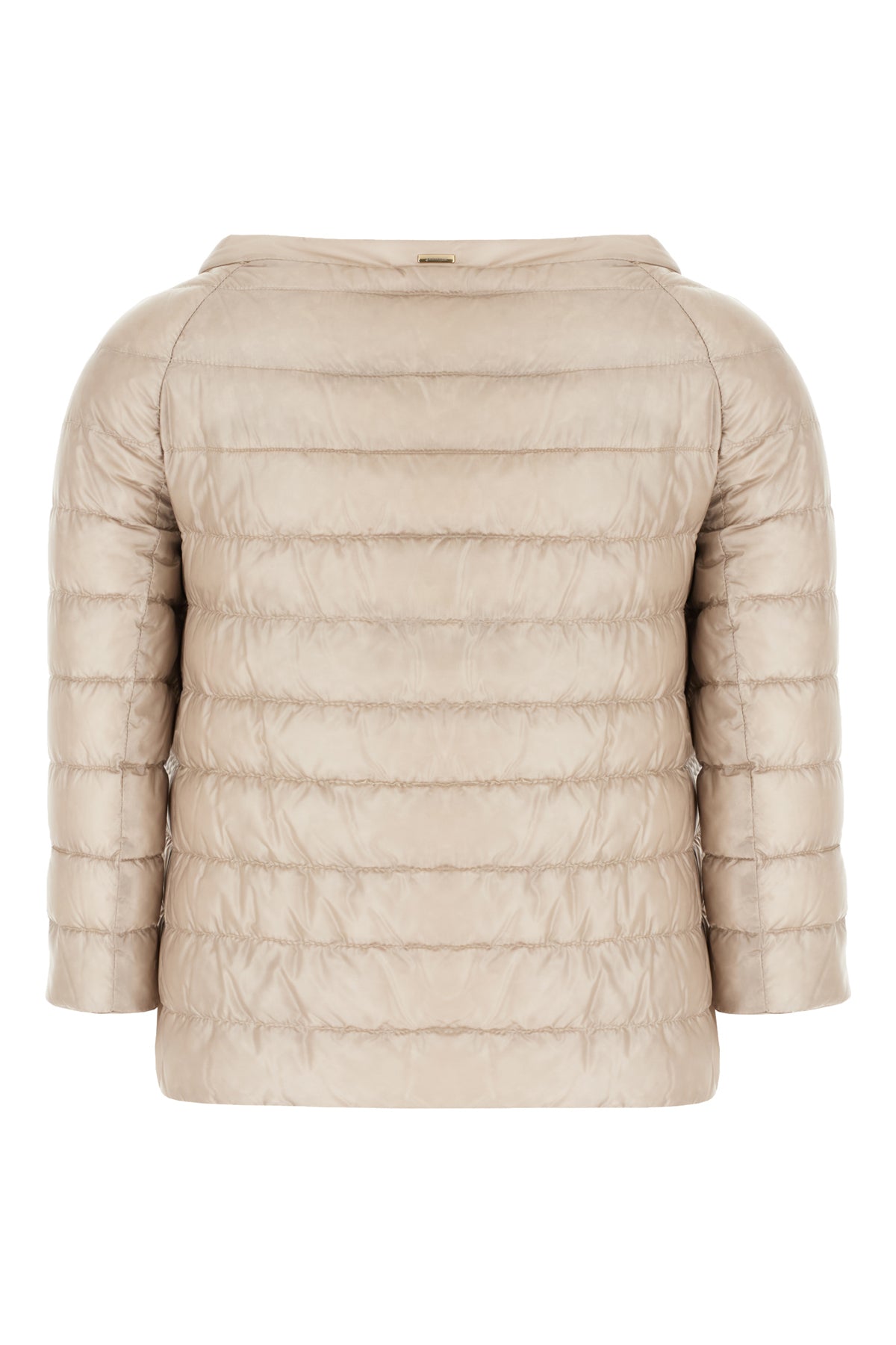 Piumino realizzato in nylon trapuntato arricchito da targhetta logata in metallo sul retro.