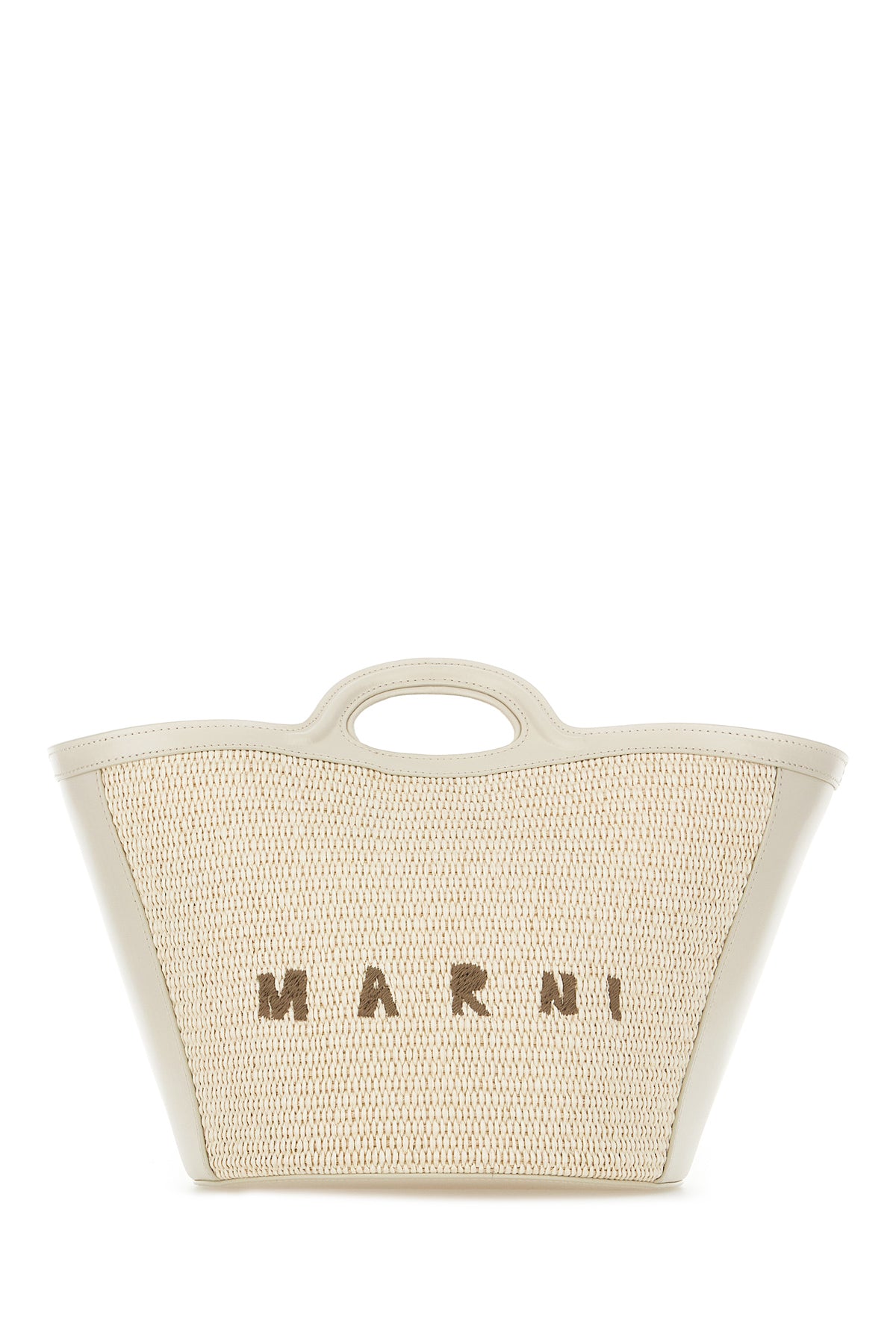 Borsa a mano realizzata in cotone e nylon con inserto in pelle tonale caratterizzata da ricamo logato a contrasto sulla parte frontale.
