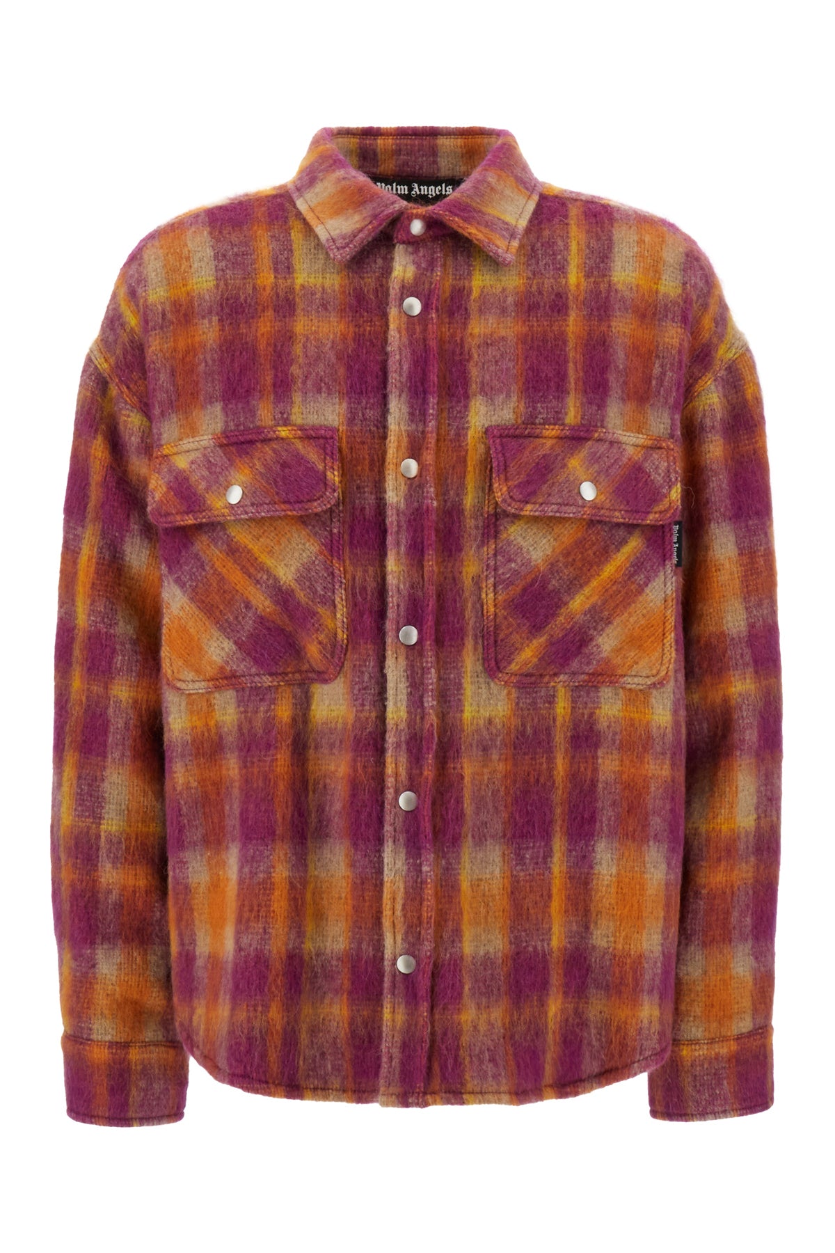 Camicia oversize realizzata in misto lana vergine caratterizzata da ricamo a motivo check su tutta la superficie arricchita da etichetta logata sulla parte frontale.