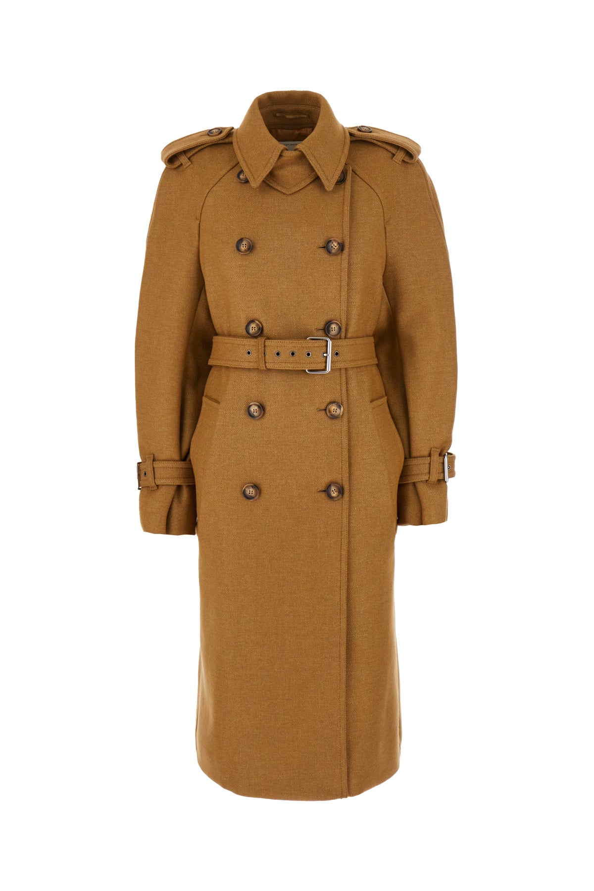 Cappotto realizzato in misto lana arricchito da cintura amovibile in tessuto tonale da annodare in vita.