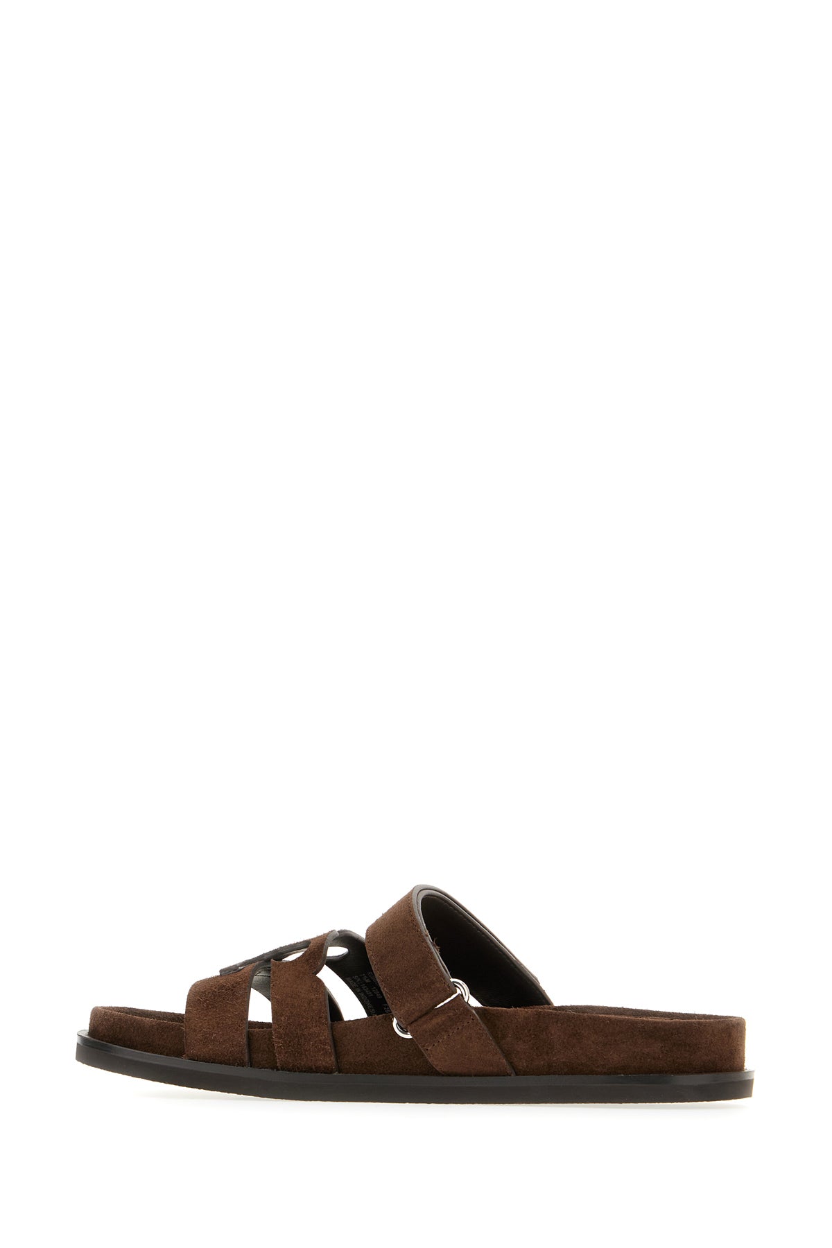 Sandali realizzate in pelle scamosciata caratterizzate da motivo logato sul collo del piede.