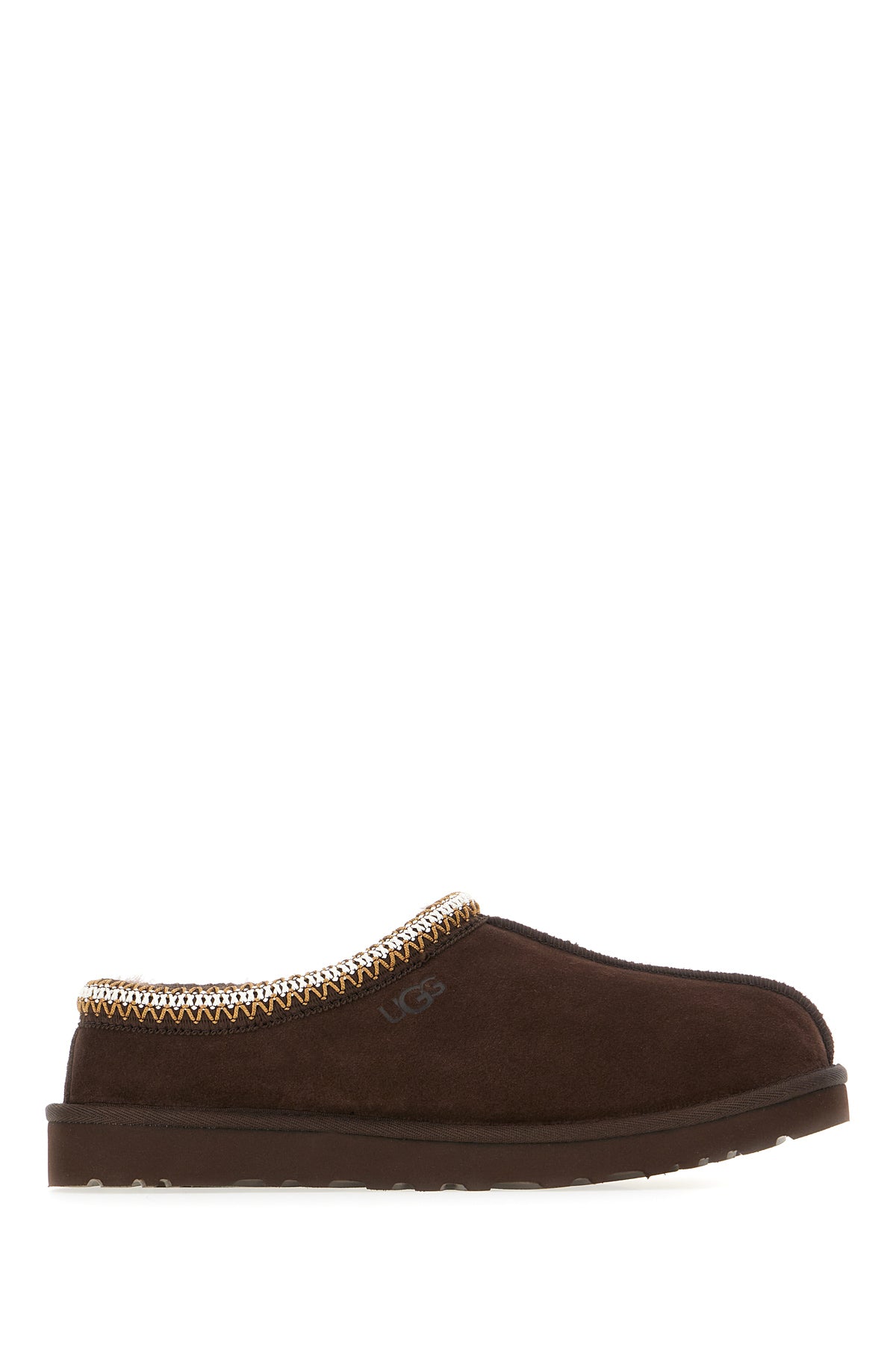Slippers realizzate in pelle scamosciata caratterizzate da logo a contrasto sulla parte frontale arricchite da profilatura a contrasto.