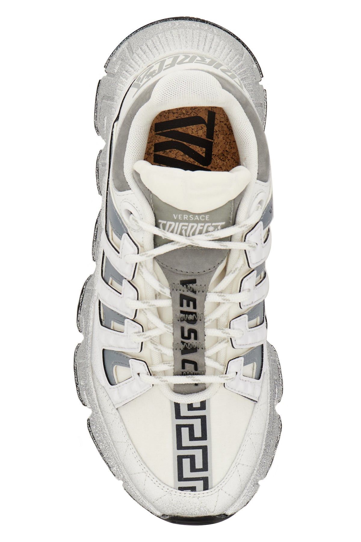 Sneakers realizzate in poliestere e pelle liscia caratterizzate da logo stampato sul lato, particolare stampa sul lato e sul tallone e glitter su tutta la superficie.